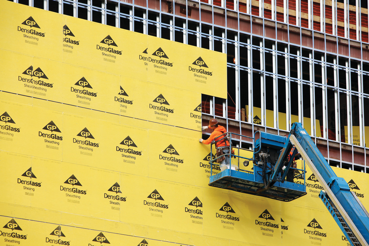 Fiberglass mat gypsum sheathing for exterior walls — moisture-resistant, mold-resistant, and code-compliant.