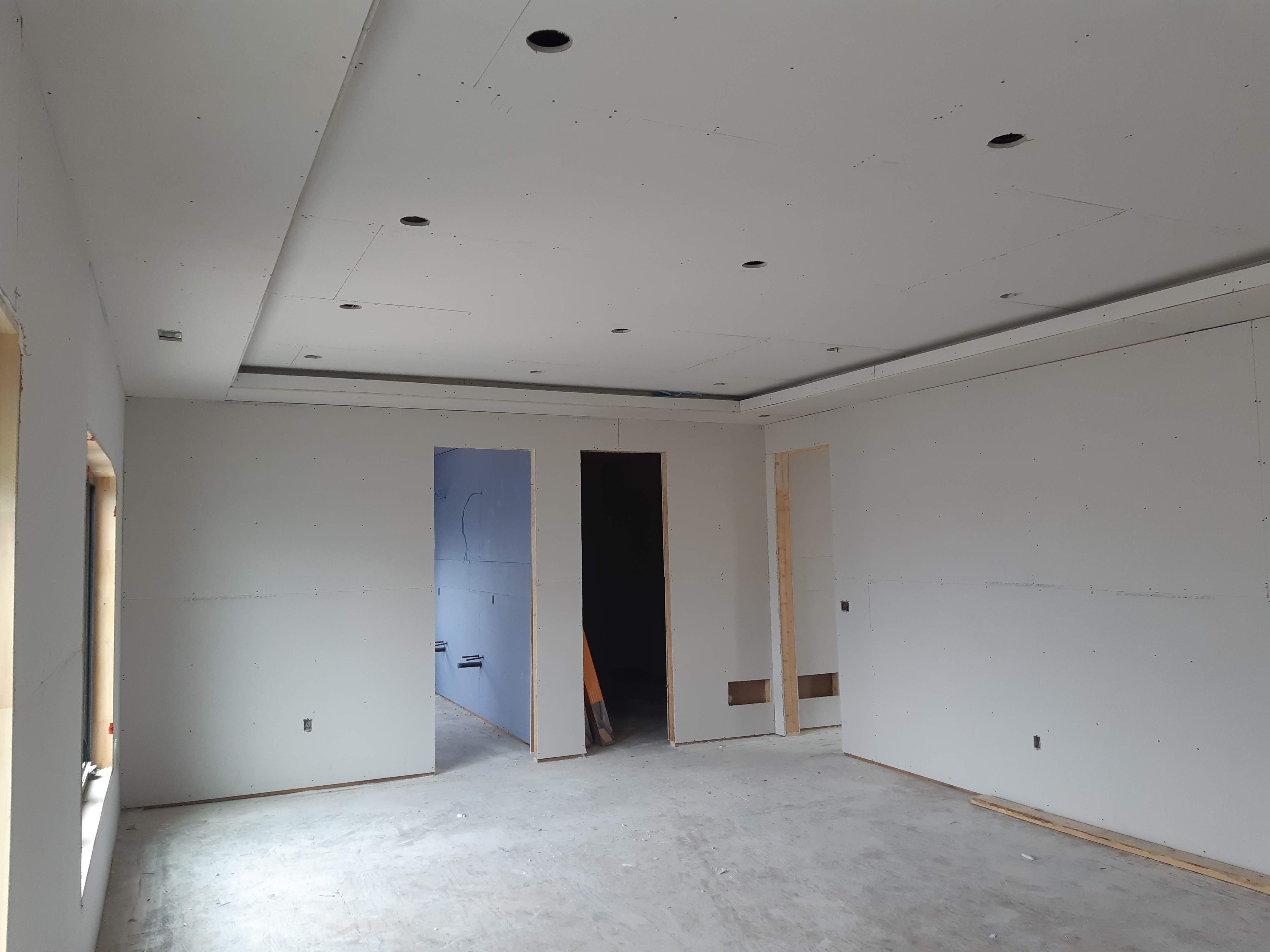 Full-scope boarding for walls and ceilings — residential custom homes to large commercial footprints.