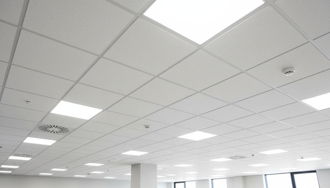 Commercial buildings rely on suspended ceilings throughout — from standard acoustic tile grids in offices to premium systems in showcase spaces.
